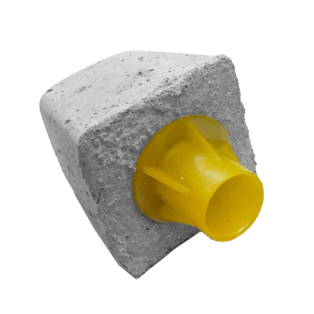 Kimstenen (kruisstenen, topstenen, eindgevelstenen en hoekstenen) zijn aanslagblokken die worden toegepast in kimmen bij tunnelbouw. Ze worden op maat voor je geproduceerd, hou dus rekening met een levertijd van twee weken. Betonprop BPV M16 wordt toegepast bij kimankers in dekking 45 mm of als stekeind voor wapening rond 16 mm.